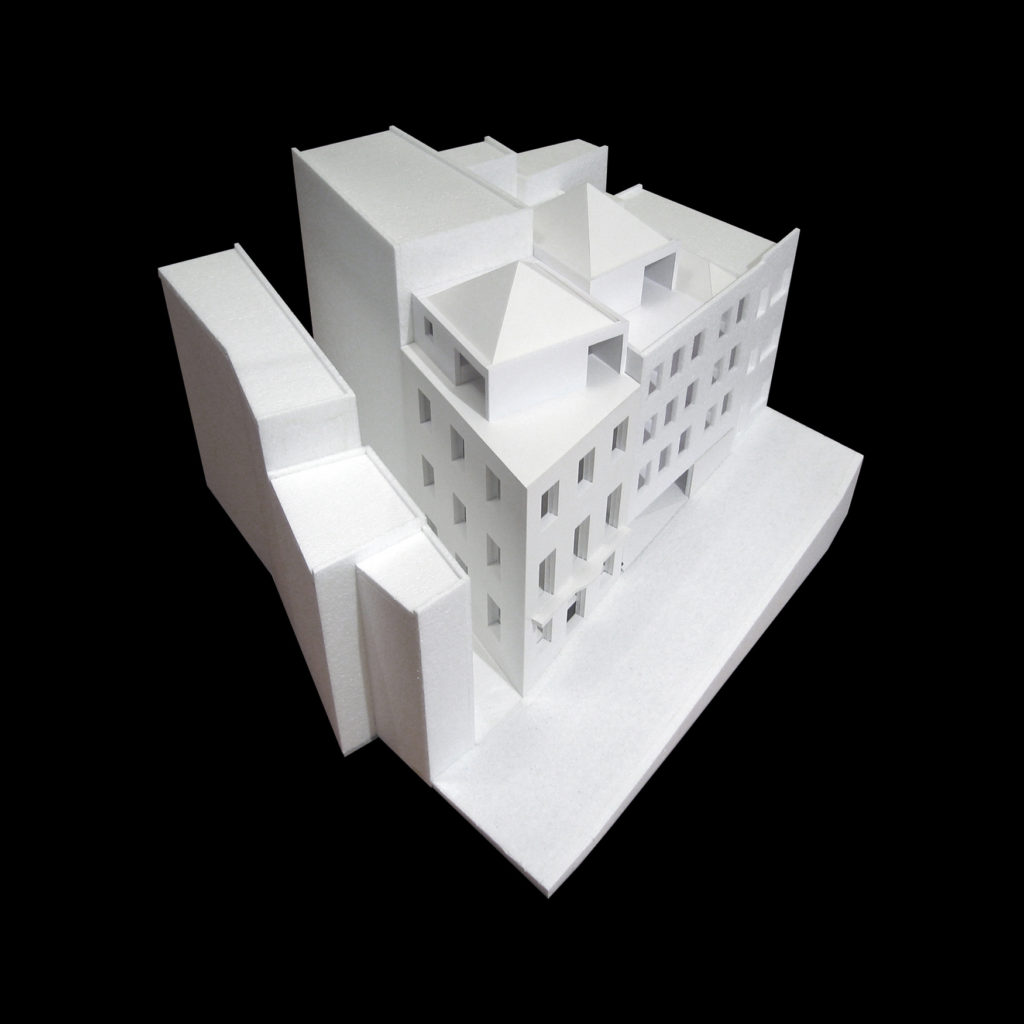 A SACHE, Cooperativa de Habitação Económica, CRL, numa primeira fase adquiriu dois prédios na Rua de Trás, no Porto, tendo convidado alguns arquitetos para fazer concurso de ideias, no qual ficámos em primeiro lugar. Posteriormente, a SACHE adquiriu um outro prédio confinante, solicitando o recomeço do projeto de forma a agregar os três prédios numa só intervenção. O projeto desenvolvido resultou em três habitações em forma de apartamentos com desníveis interiores, com estacionamento no piso térreo.